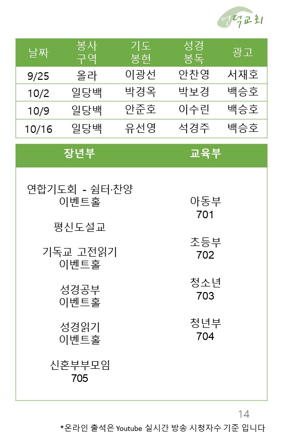 예배 및 활동