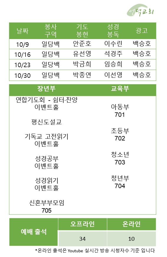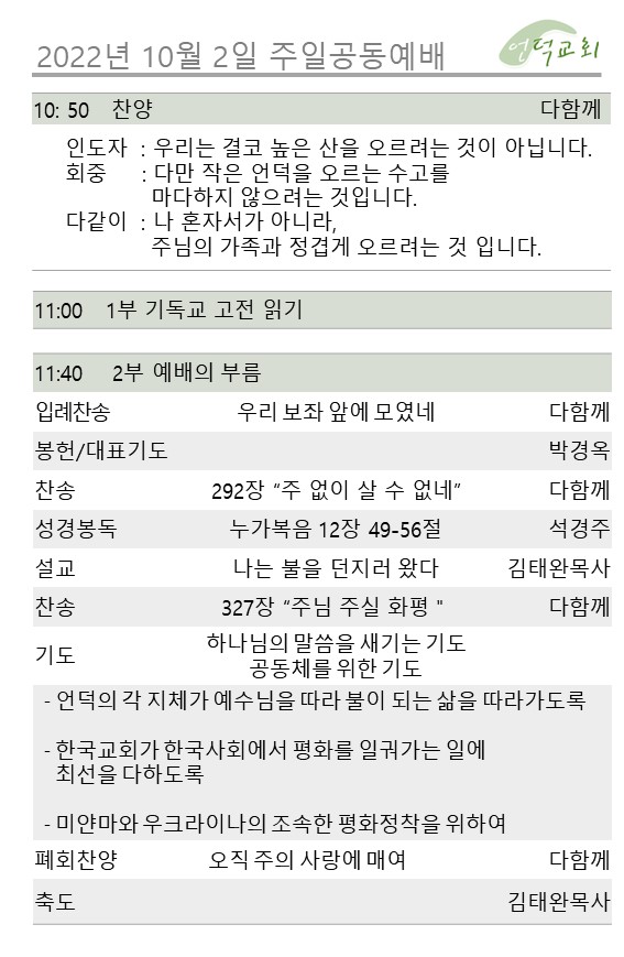 예배 및 활동