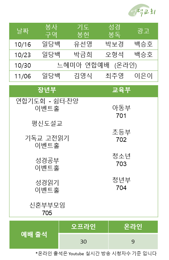 예배 및 활동