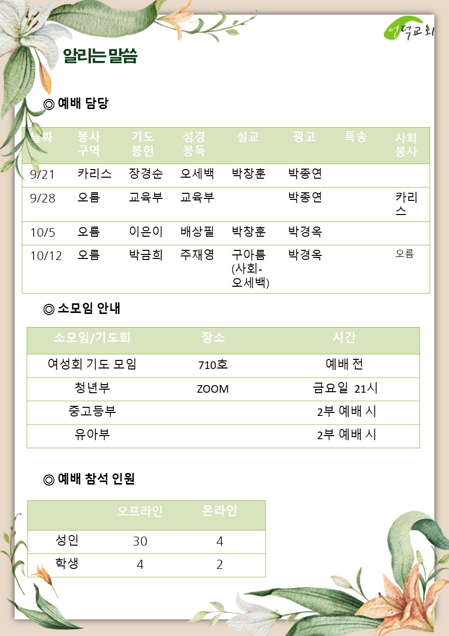 예배 및 활동