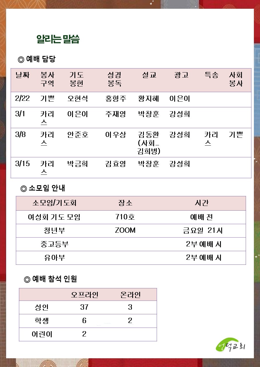 예배 및 활동