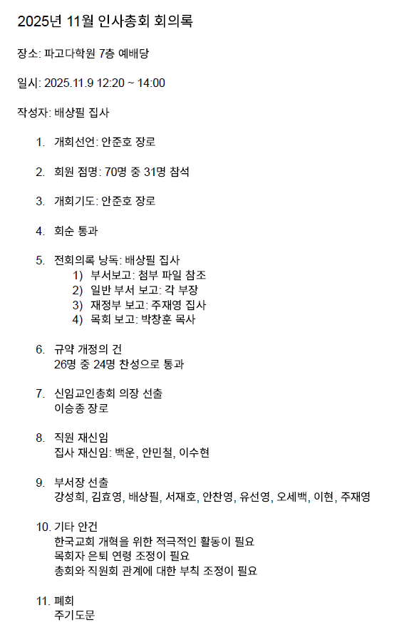 2025년 11월 인사총회 회의록