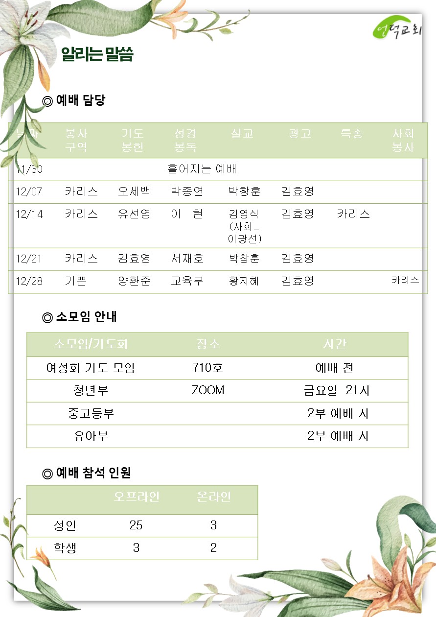 예배 및 활동
